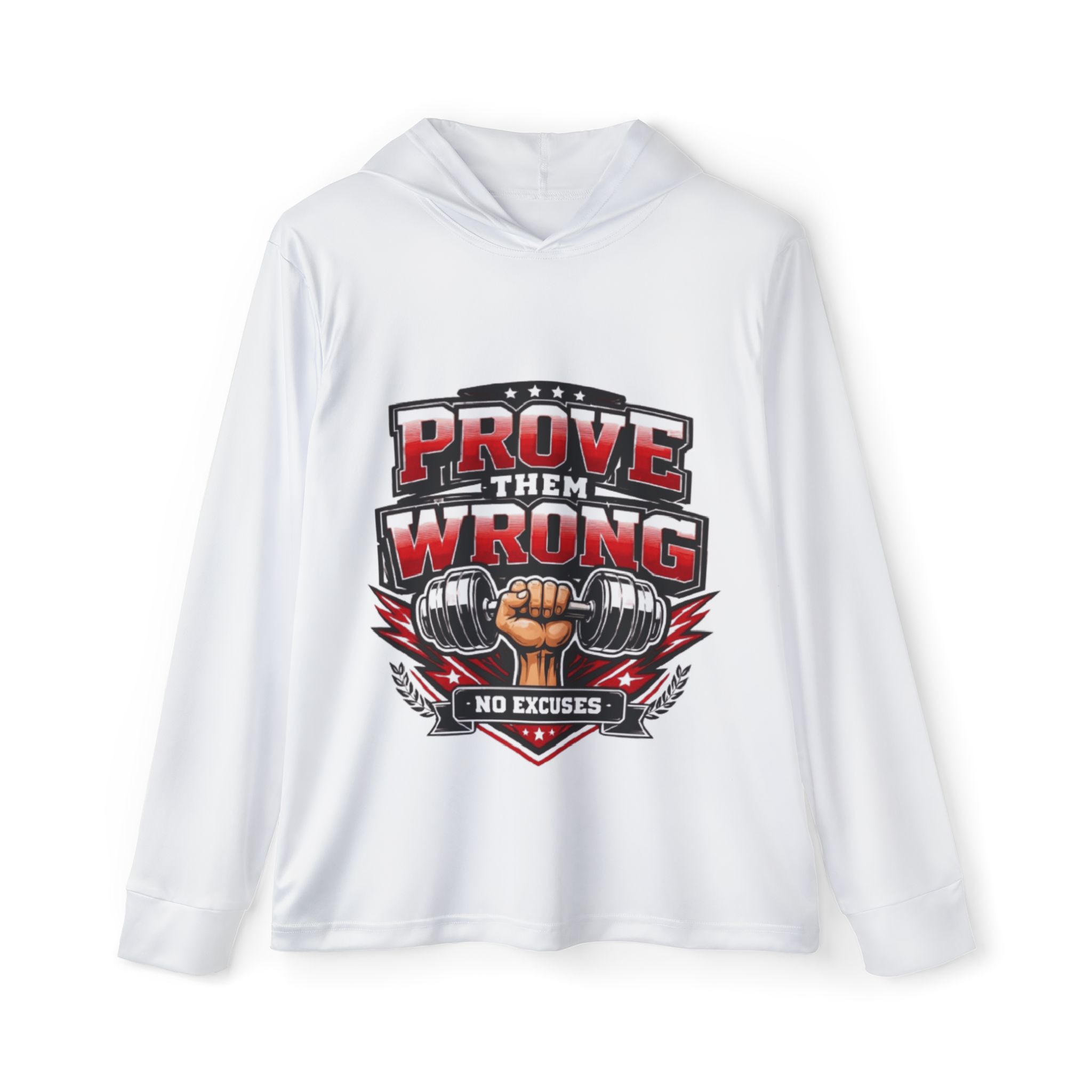 Built for discipline, early mornings, and no-excuses training, the Prove Them Wrong Lightweight Performance Hoodie is designed for athletes who show up before the crowd. The bold emblem—featuring a clenched fist and dumbbells—delivers motivation without noise. It’s a clean, athletic statement that fits seamlessly into gym routines, outdoor workouts, and focused warmups.