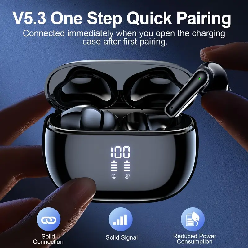 π V5.3 Wireless Earbuds with LED Display, Touch Control & Clear Call Quality
